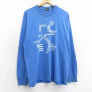 L★古着 フルーツオブザルーム 長袖 ビンテージ Tシャツ メンズ 90年代 90s マラソン クルーネック USA製 薄紺 霜降り