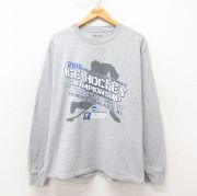 XL★古着 長袖 ビンテージ Tシャツ メンズ 90年代 90s アイスホッケー 大きいサイズ クルーネック グレー 霜降り