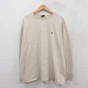 XL★古着 ラルフローレン 長袖 ブランド Tシャツ メンズ 90年代 90s ワンポイントロゴ 大きいサイズ コットン クルーネック 薄ベージュ 霜降り