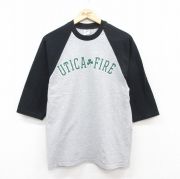 M★古着 7分袖 ビンテージ Tシャツ メンズ 00年代 00s UTICA FIRE 17 ラグラン ツートンカラー クルーネック グレー 霜降り他