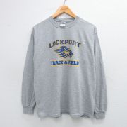 L★古着 長袖 ビンテージ Tシャツ メンズ 00年代 00s LOCKPORT クルーネック グレー 霜降り