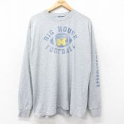 L★古着 長袖 ビンテージ Tシャツ メンズ 00年代 00s ミシガン フットボール クルーネック グレー 霜降り