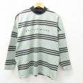 【商品名】 XL★古着 長袖 ビンテージ Tシャツ レディース 90年代 90s 壁画 大きいサイズ モックネック ハイネック 薄緑他 ボーダー