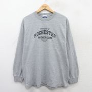 XL★古着 長袖 ビンテージ Tシャツ メンズ 90年代 90s アイスホッケー 大きいサイズ クルーネック グレー 霜降り