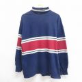 L★古着 トミーヒルフィガー 長袖 ブランド Tシャツ メンズ 90年代 90s ワンポイントロゴ コットン タートルネック ハイネック 紺他 ボーダー