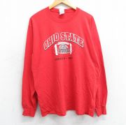 L★古着 長袖 ビンテージ Tシャツ メンズ 00年代 00s オハイオステート フットボール コットン クルーネック 赤