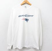 L★古着 長袖 ビンテージ Tシャツ メンズ 00年代 00s NFL ニューイングランドペイトリオッツ バドライト ビール コットン クルーネック 白 アメフト スーパーボウル