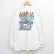 L★古着 ヘインズ 長袖 ビンテージ Tシャツ メンズ 00年代 00s ミシガン ボート コットン クルーネック 白