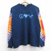 L★古着 長袖 ビンテージ Tシャツ メンズ 00年代 00s ラクロス ハート ピースマーク コットン クルーネック 紺他 タイダイ