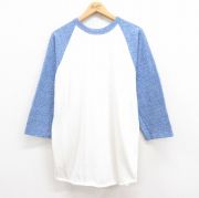XL★古着 7分袖 ビンテージ Tシャツ メンズ 80年代 80s 無地 ツートンカラー クルーネック USA製 白