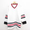 【商品名】 L★古着 長袖 ビンテージ Tシャツ アイスホッケー ジャージ メンズ 80年代 80s メッシュ地 Vネック カナダ製 白 ユニフォーム ゲームシャツ