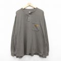 【商品名】 XL★古着 ウォールズ 長袖 Tシャツ メンズ 胸ポケット付き 大きいサイズ ヘンリーネック 茶 霜降り