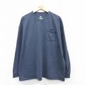 【商品名】 XL★古着 ナイキ NIKE 長袖 Tシャツ メンズ ワンポイントロゴ 胸ポケット付き 大きいサイズ コットン クルーネック 紺