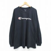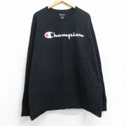 XL★古着 チャンピオン Champion 長袖 Tシャツ メンズ ビッグロゴ 大きいサイズ コットン クルーネック 黒