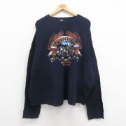 XL★古着 長袖 サーマル Tシャツ メンズ 鳥 モーターサイクルラリー 大きいサイズ コットン クルーネック 紺