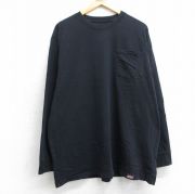 XL★古着 ディッキーズ 長袖 Tシャツ メンズ 無地 胸ポケット付き 大きいサイズ コットン クルーネック 黒