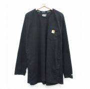 XL★古着 カーハート 長袖 Tシャツ メンズ ワンポイントロゴ 胸ポケット付き ロング丈 大きいサイズ クルーネック 黒