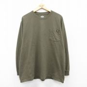 XL★古着 ディッキーズ 長袖 Tシャツ メンズ 無地 胸ポケット付き 大きいサイズ コットン クルーネック 濃緑