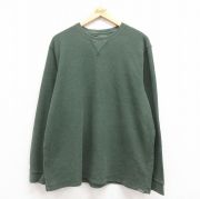 XL★古着 エディーバウアー 長袖 サーマル Tシャツ メンズ 無地 クルーネック 緑