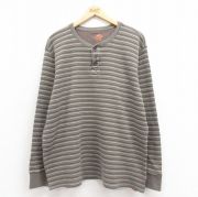 XL★古着 長袖 サーマル Tシャツ メンズ 大きいサイズ コットン クルーネック 薄緑他 ストライプ