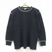 XL★古着 長袖 ビンテージ サーマル Tシャツ メンズ 80年代 80s 無地 クルーネック 黒