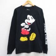 XL★古着 長袖 Tシャツ メンズ ディズニー ミッキー 大きいサイズ コットン クルーネック 黒