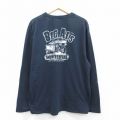 XL★古着 長袖 Tシャツ メンズ S 大きいサイズ コットン クルーネック 紺