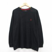 XL★古着 ラルフローレン 長袖 ブランド サーマル Tシャツ メンズ ワンポイントロゴ 大きいサイズ クルーネック 黒