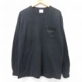 L★古着 長袖 ビンテージ Tシャツ メンズ 90年代 90s 無地 胸ポケット付き コットン クルーネック USA製 黒