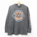L★古着 マジェスティック 長袖 Tシャツ メンズ NFL ニューイングランドペイトリオッツ クルーネック 濃グレー 霜降り アメフト スーパーボウル