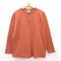 【商品名】 L★古着 長袖 ビンテージ Tシャツ メンズ 90年代 90s 無地 コットン ヘンリーネック USA製 オレンジ系