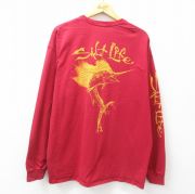 XL★古着 長袖 Tシャツ メンズ 魚 SALT LIFE 大きいサイズ コットン クルーネック 赤