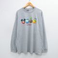 【商品名】 XL★古着 長袖 Tシャツ メンズ ディズニー ミッキー ドナルド 大きいサイズ クルーネック グレー 霜降り