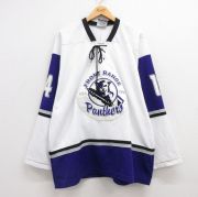 XL★古着 長袖 ビンテージ Tシャツ アイスホッケー ジャージ メンズ 00年代 00s パンサーズ メッシュ地 白他 ユニフォーム ゲームシャツ