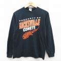 L★古着 長袖 ビンテージ Tシャツ メンズ 00年代 00s ファルコンズ ホッケー コットン クルーネック 黒
