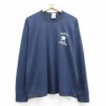 L★古着 STEVE&BARRYS 長袖 Tシャツ メンズ ミシガン コットン クルーネック 紺