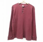 XL★古着 ピューリタン 長袖 ビンテージ Tシャツ メンズ 00年代 00s 無地 大きいサイズ ヘンリーネック えんじ
