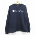【商品名】 L★古着 チャンピオン champion 長袖 Tシャツ メンズ ビッグロゴ コットン クルーネック 濃紺