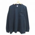 【商品名】 XL★古着 ラッセル 長袖 Tシャツ メンズ 無地 胸ポケット付き 大きいサイズ クルーネック 黒