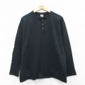 XL★古着 長袖 ビンテージ Tシャツ メンズ 00年代 00s 無地 大きいサイズ ロング丈 コットン ヘンリーネック 黒