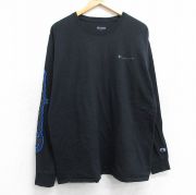XL★古着 チャンピオン Champion 長袖 Tシャツ メンズ ビッグロゴ コットン クルーネック 黒
