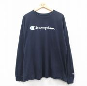 XL★古着 チャンピオン Champion 長袖 Tシャツ メンズ ビッグロゴ 大きいサイズ コットン クルーネック 紺