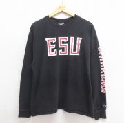 XL★古着 チャンピオン Champion 長袖 Tシャツ メンズ ESU クルーネック 黒