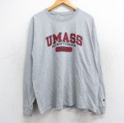 XL★古着 チャンピオン Champion 長袖 Tシャツ メンズ UMASS ミニットマン クルーネック グレー 霜降り