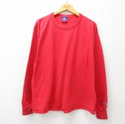 XL★古着 チャンピオン champion 長袖 Tシャツ メンズ 無地 大きいサイズ コットン クルーネック 赤