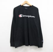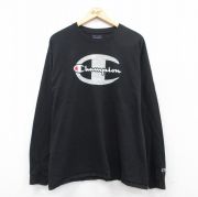 XL★古着 チャンピオン Champion 長袖 Tシャツ メンズ ビッグロゴ クルーネック 黒