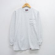 L★古着 ディッキーズ 長袖 ビンテージ Tシャツ メンズ 90年代 90s 無地 胸ポケット付き コットン クルーネック USA製 薄グレー 霜降り