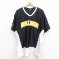 XL★古着 フブ FUBU 半袖 ビンテージ フットボール Tシャツ メンズ 90年代 90s 05 大きいサイズ ロング丈 Vネック USA製 黒他 ユニフォーム ゲームシャツ