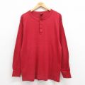 XL★古着 長袖 ビンテージ Tシャツ メンズ 00年代 00s 無地 コットン ヘンリーネック エンジ
