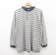 XL★古着 COUNTY SEAT 長袖 ビンテージ Tシャツ メンズ 90年代 90s ヘンリーネック USA製 紺他 ボーダー